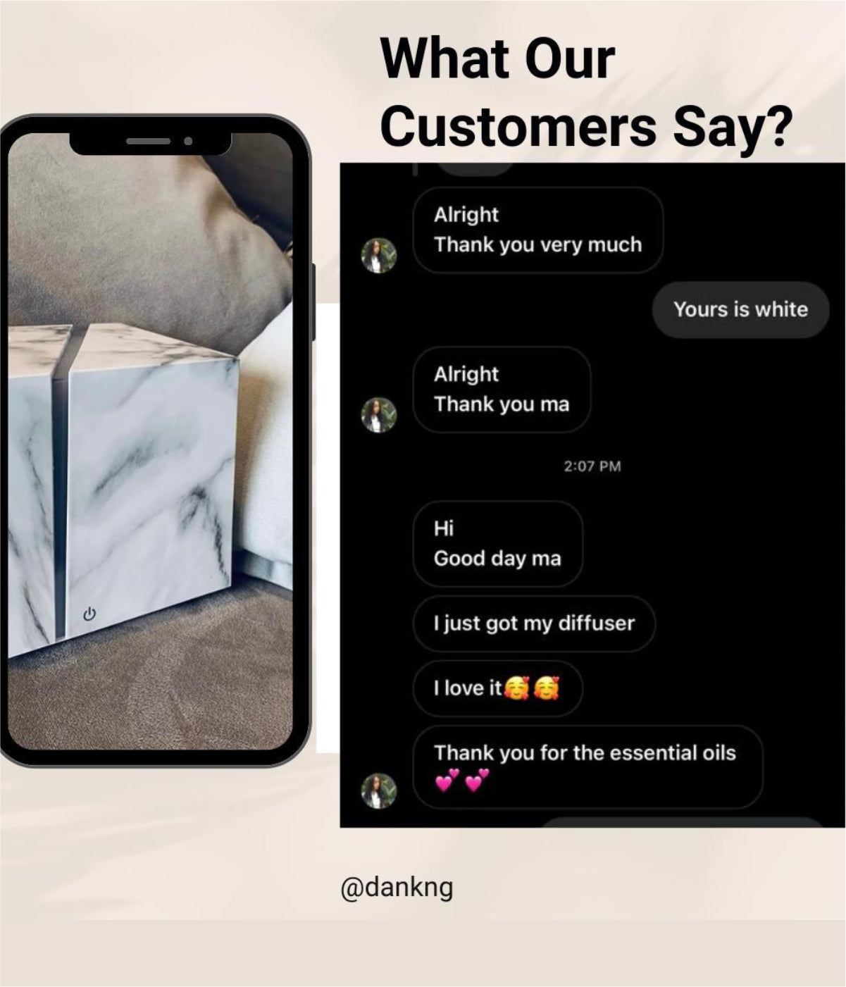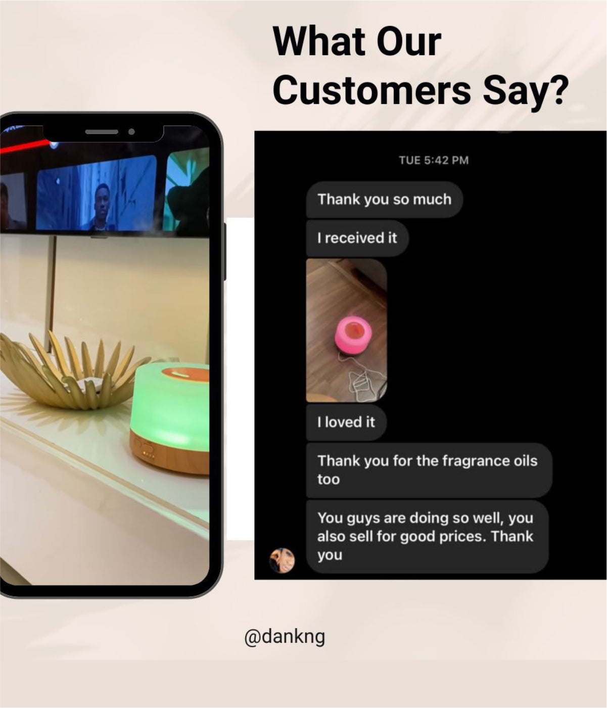 "The diffuser and essential oils I got was really a game changer for my home and really left a lasting impression on my visitors. Everybody just asking me what’s scenting. I need more oils."